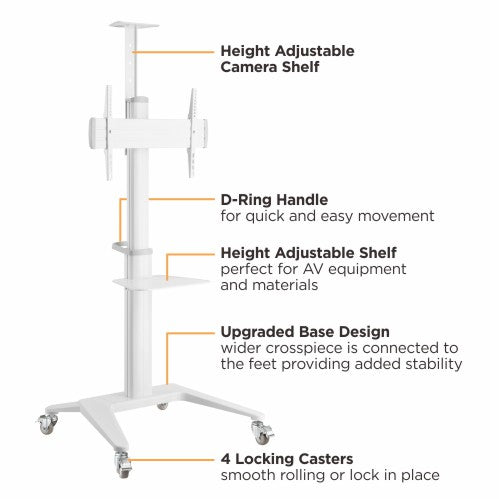 Universal Mobile TV Stand TV Cart with Height Adjustable shelf and flat screen mount – Fits 32 to 65 inches LED, LCD TVs
