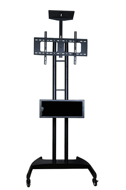 TV Floor Stand on Wheels I Universal Mobile TV Stand with AV Cabinet !Rolling TV Cart for Screens 32 to 65 inches (TMC-E)