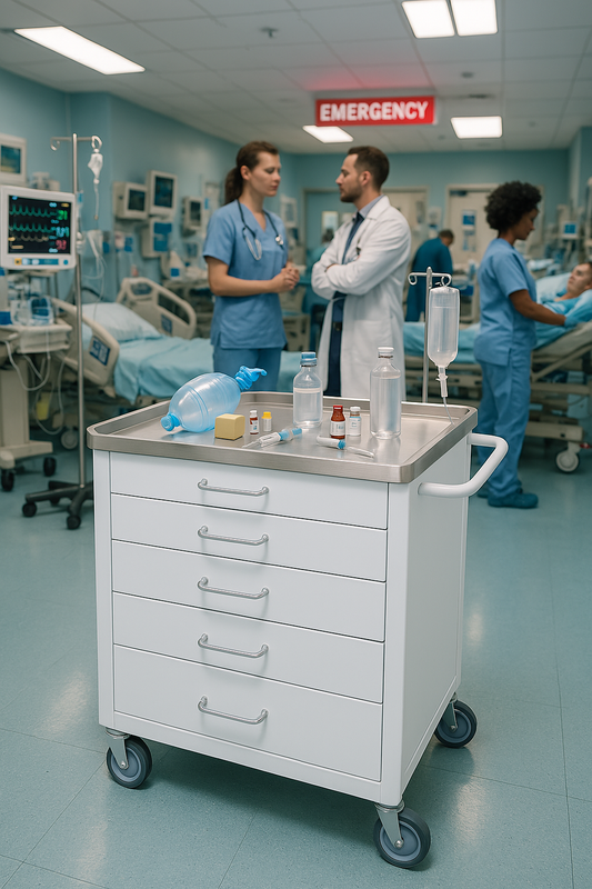 White Medical Crash Cart with Stainless Steel Top – 5-Drawer Mobile Emergency Trolley