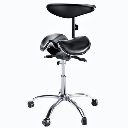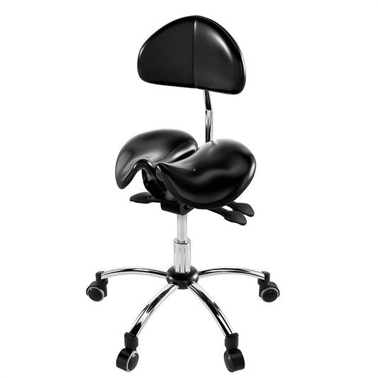 Ergonomic Saddle Stool with Back Support, Saddle Seat and Angle Adjustment, Black (R801)