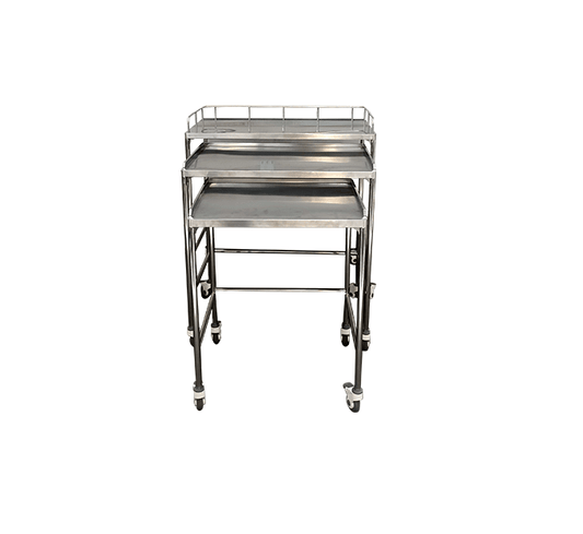• SS Instrument Trolley A/C: Made from premium stainless steel, these trolleys are easy to clean and sterilize. They feature adjustable height settings and a stable base for secure positioning during operations.