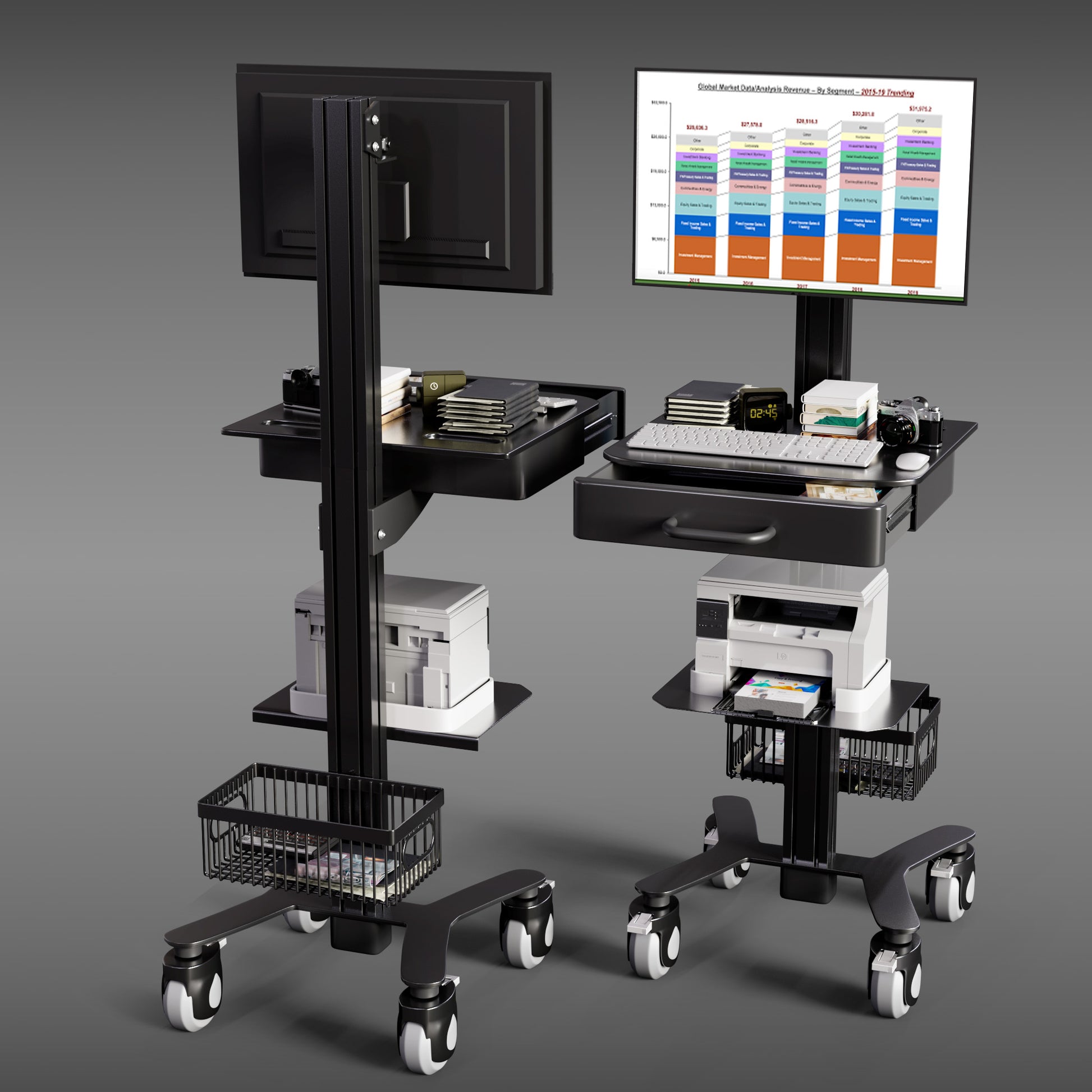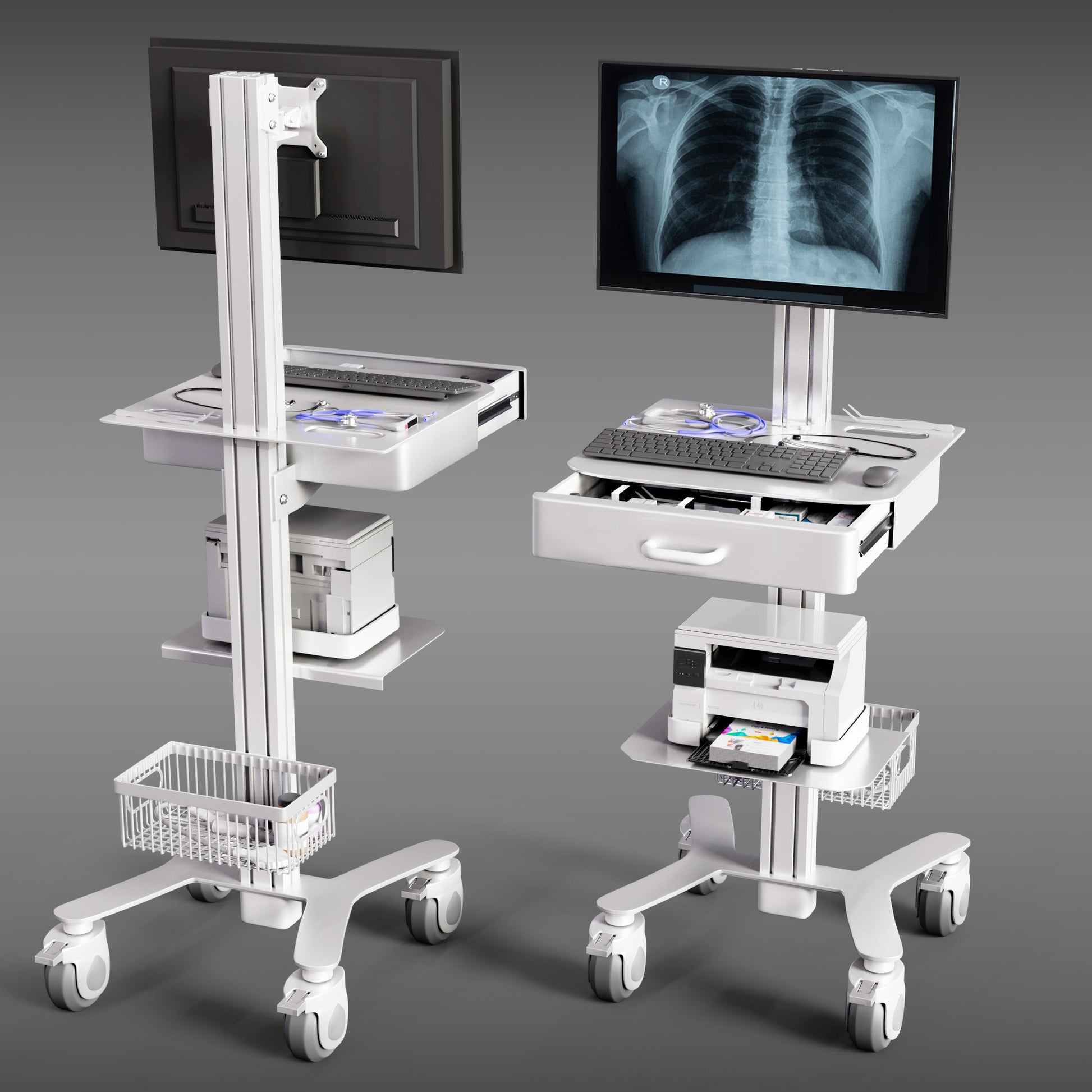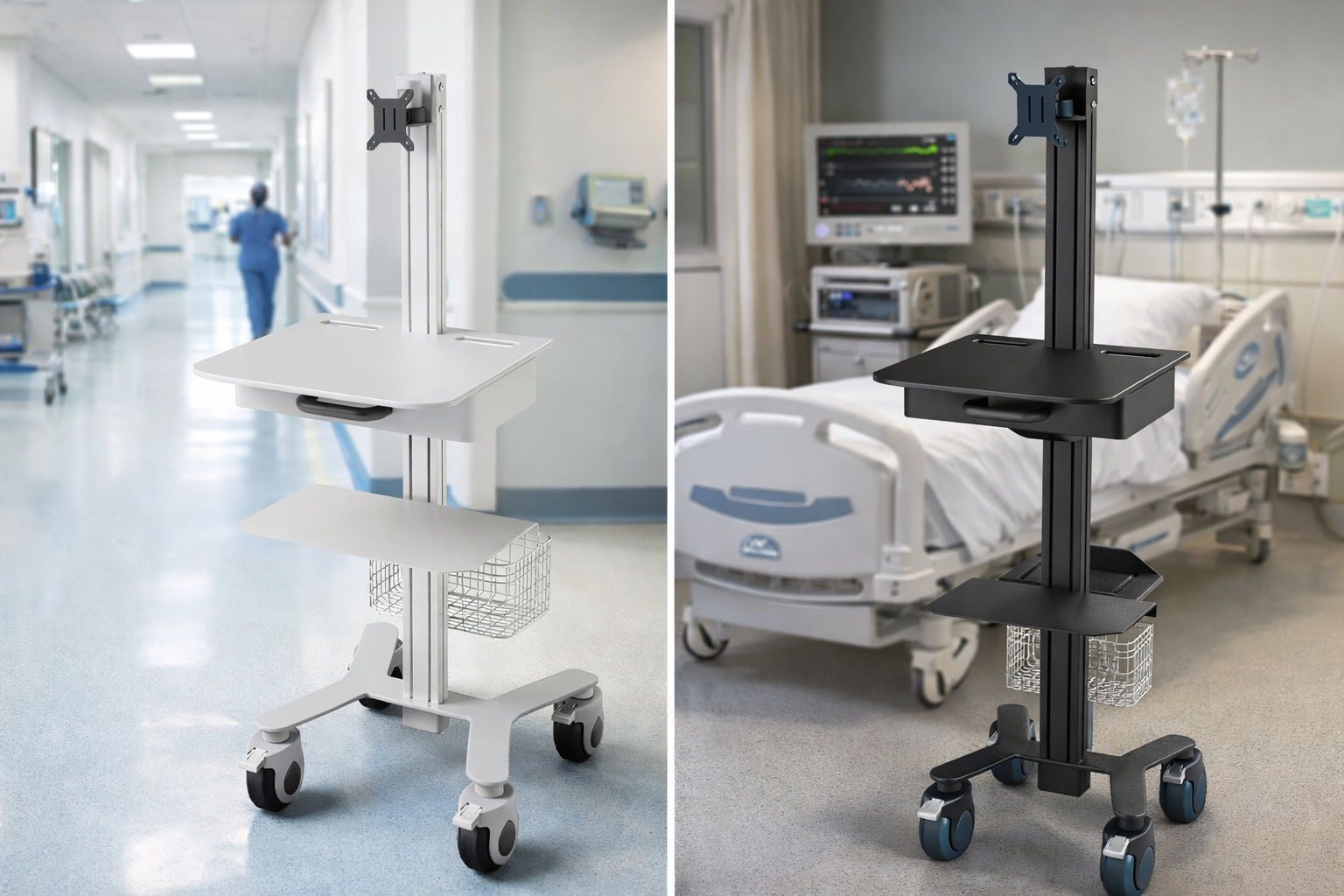 A medical computer cart is designed to support mobile documentation, patient monitoring, and digital workflows in healthcare environments. It allows doctors and nurses to move computer systems between patient areas while maintaining ergonomic working positions and organised equipment storage.